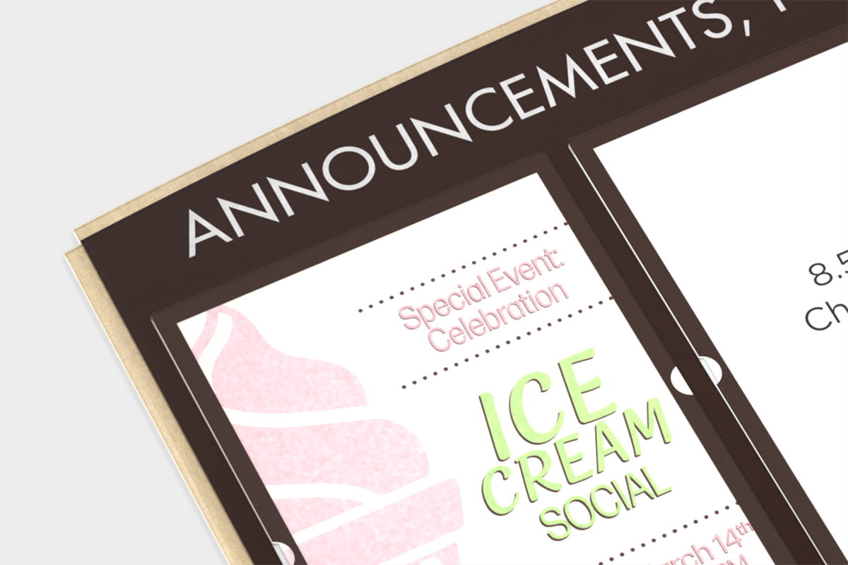 • Suggested uses: menus, daily activities, or upcoming events.