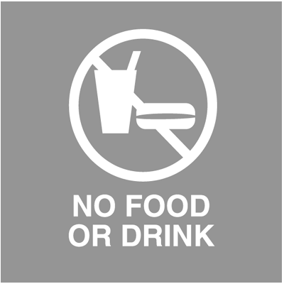 • Standard no food or drink symbol.